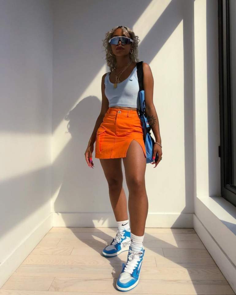 Сочетание с оранжевыми штанами.