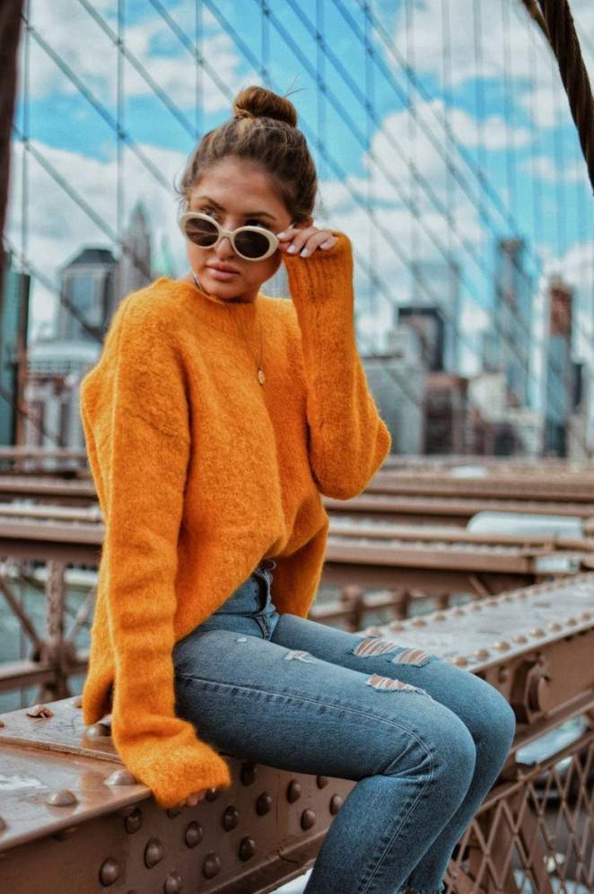 Ярко оранжевый свитер.