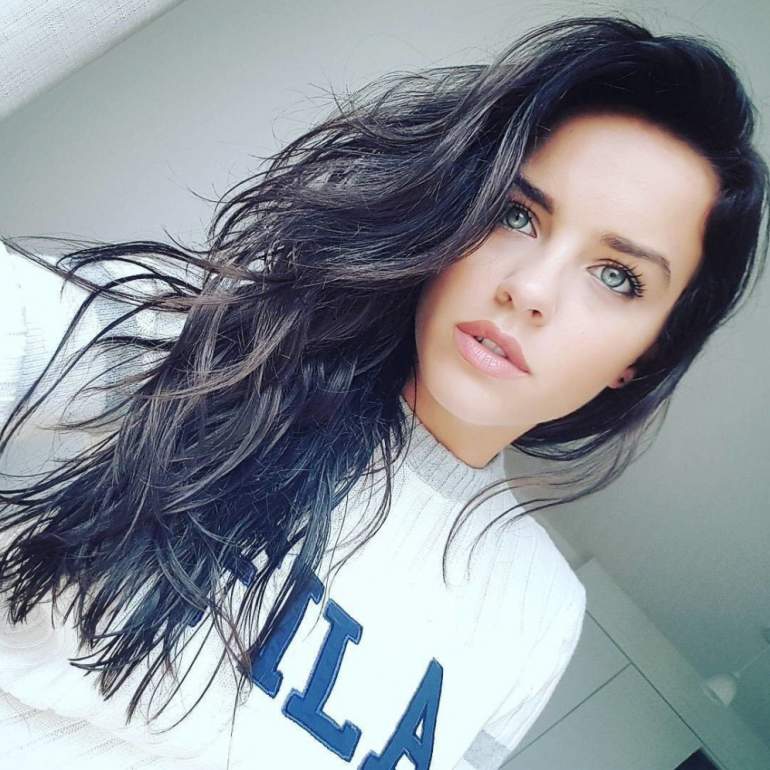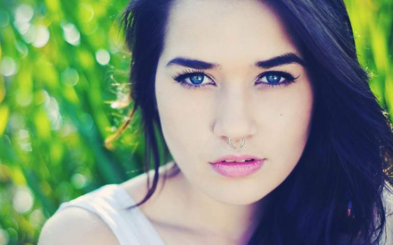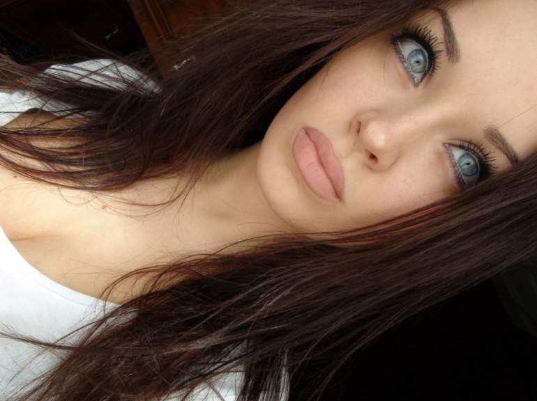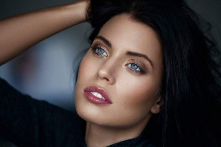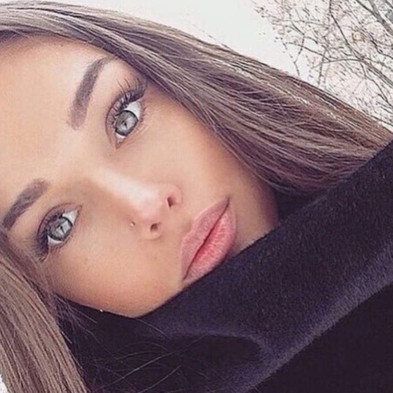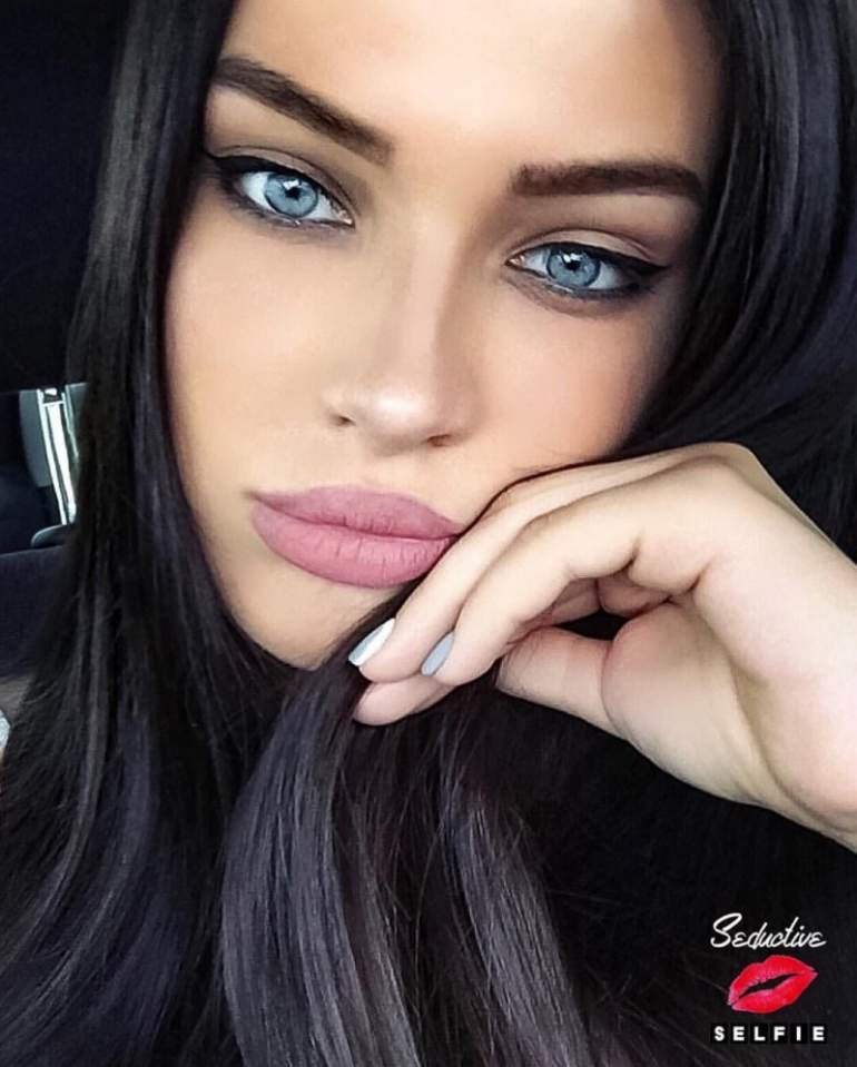 Прекрасная брюнетка с голубыми очами селфи.