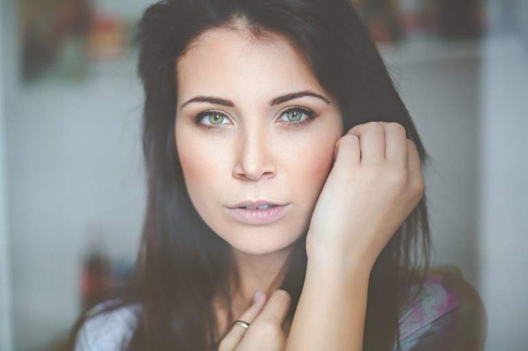 Брюнетка с голубыми очами селфи.
