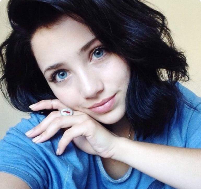Брюнетка с челкой и голубыми очами.