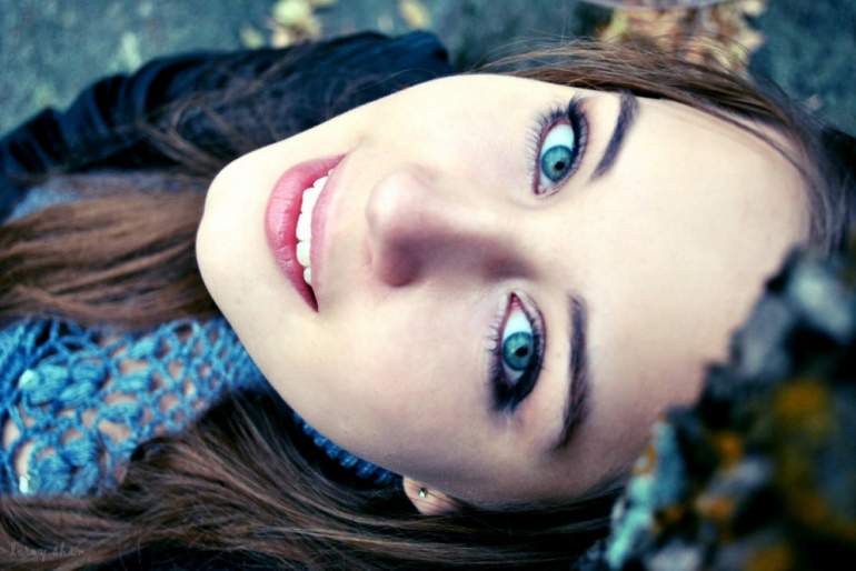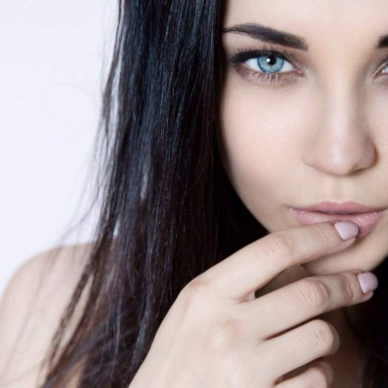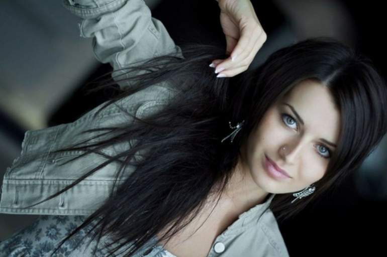 Брюнетка с голубыми очами.