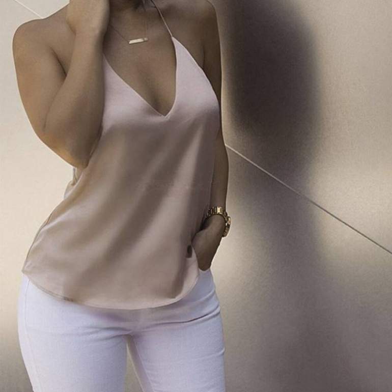 Шелковый топ с открытой спиной.