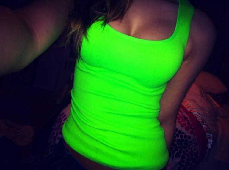 Девушка красавица в майке селфи.