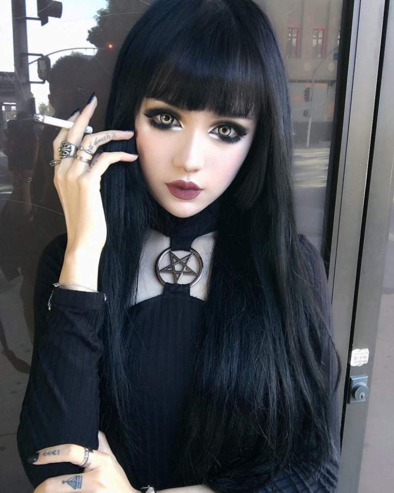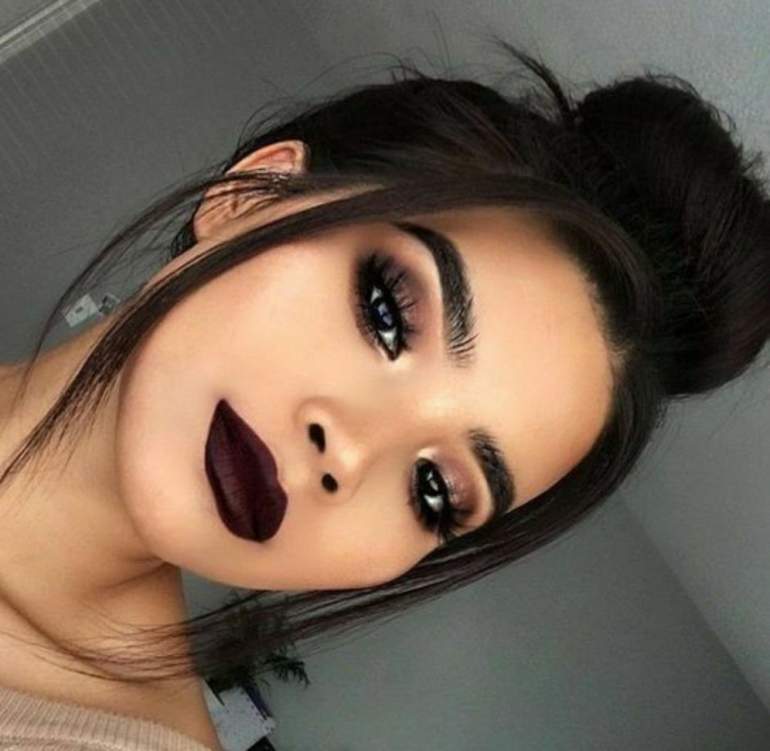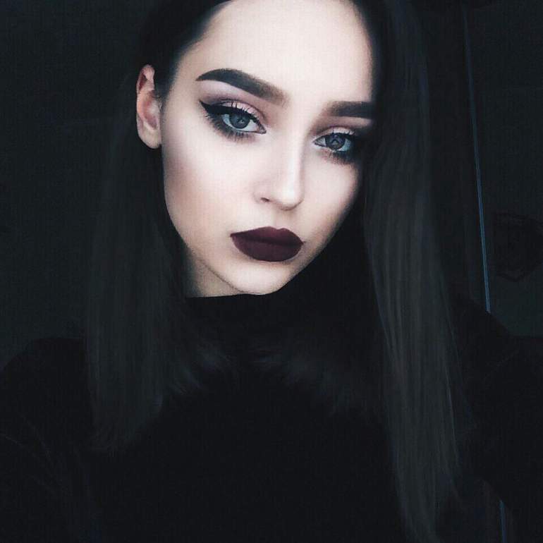 Мейкап с черной помадой для брюнеток.
