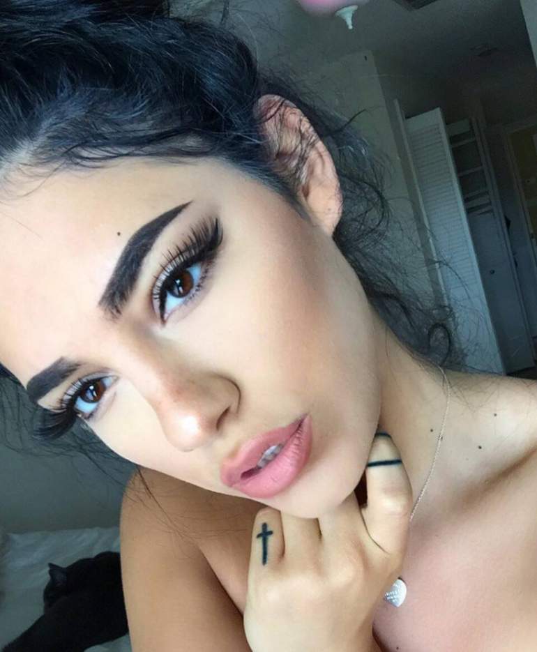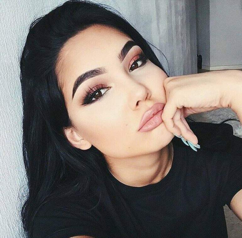Брюнетка с темными бровями.