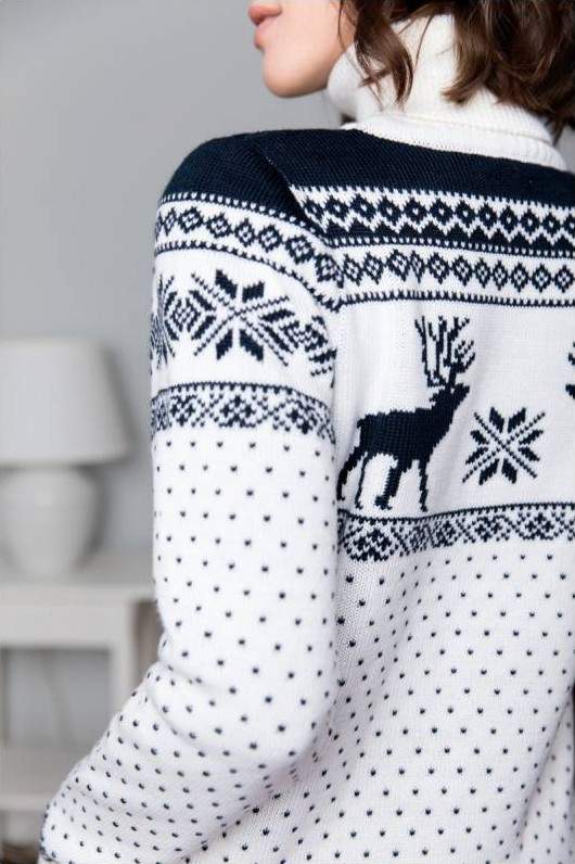 Дамский белоснежный шерстяной свитер новогодний купить.