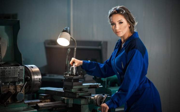 Девушка токарь.