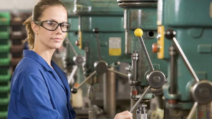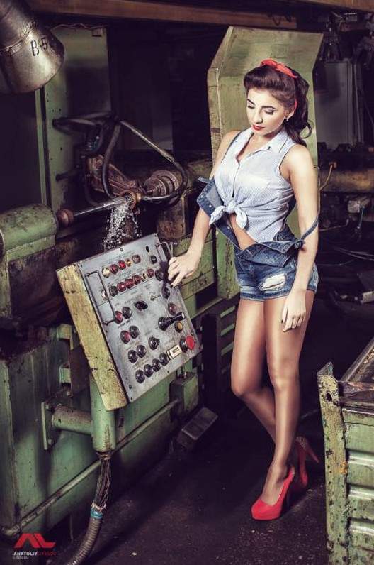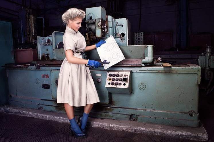 Девушка за станком.