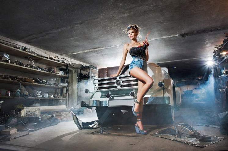 Девушка в гараже.