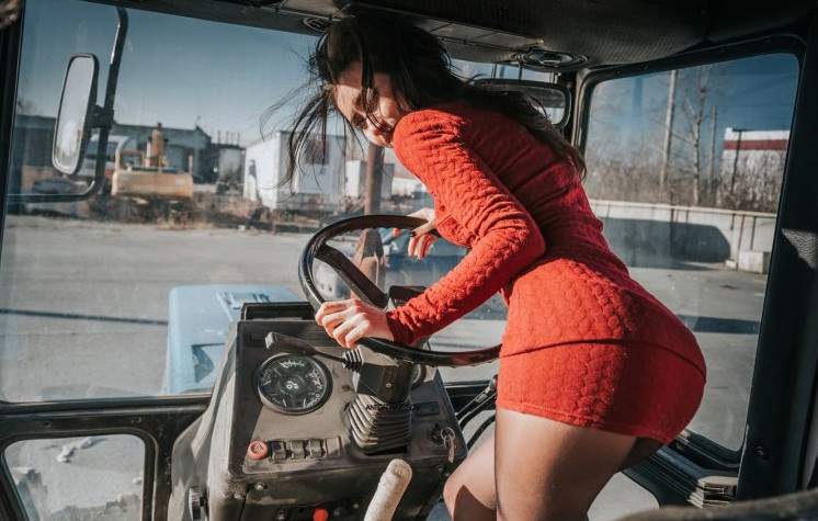 Девушка на тракторе.