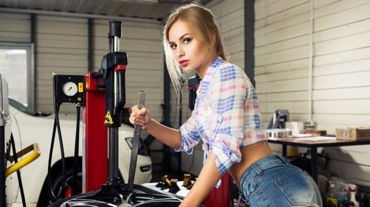 Девушка в автосервисе.
