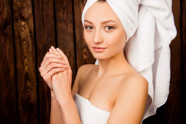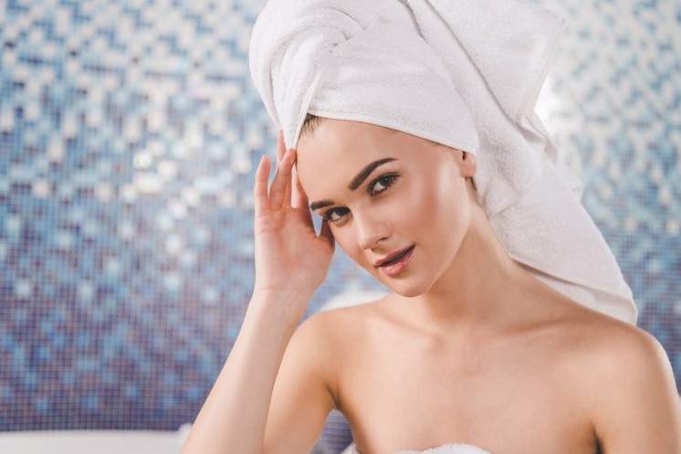 Красивая девушка с полотенцем на голове.