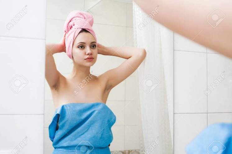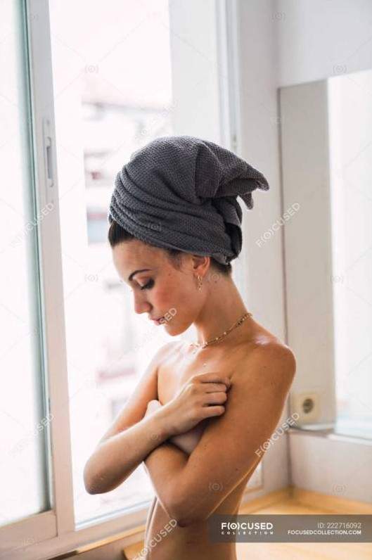 Нагая с полотенцем на голове.