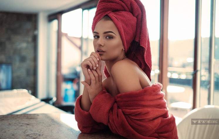 Фотосессия в халате и полотенце.