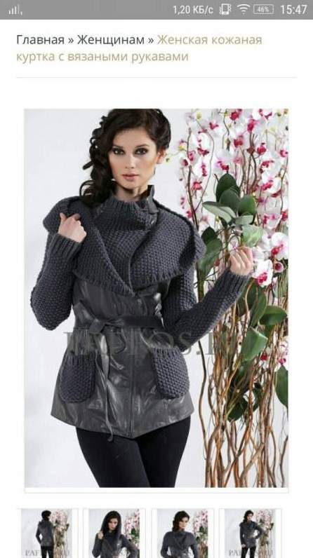 Куртка с вязаными рукавами.