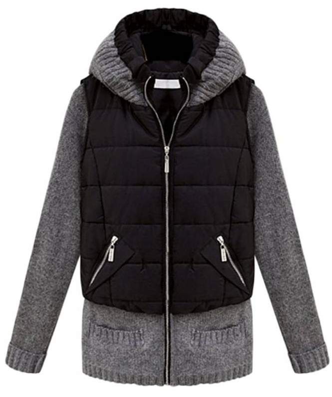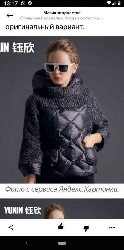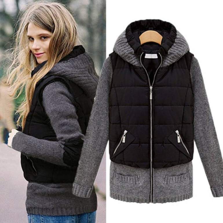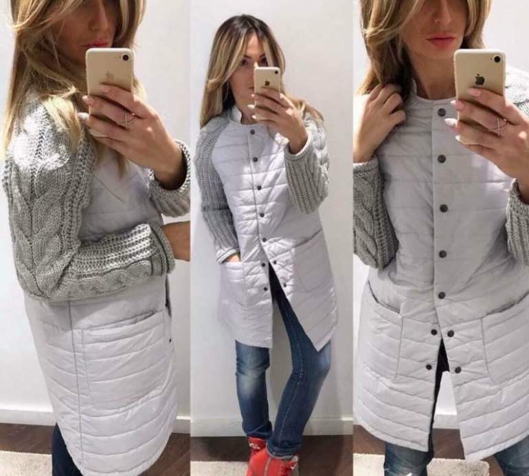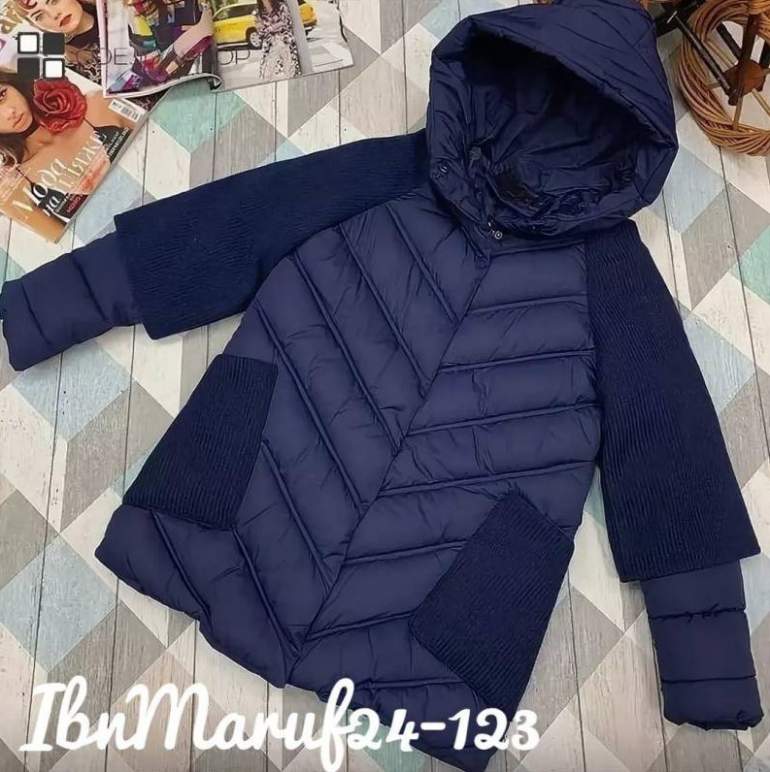 Пуховик с трикотажными рукавами.