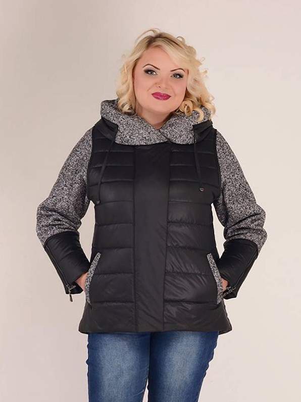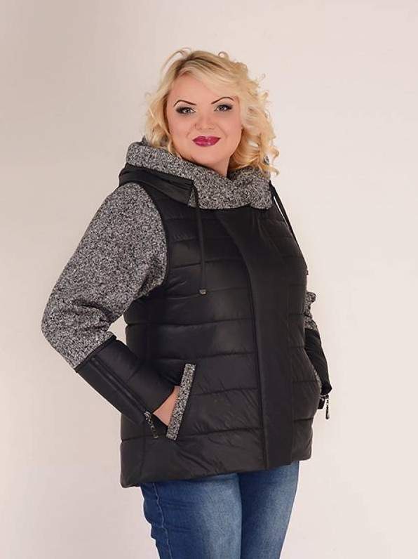 Куртка с трикотажными рукавами и капюшоном женская.
