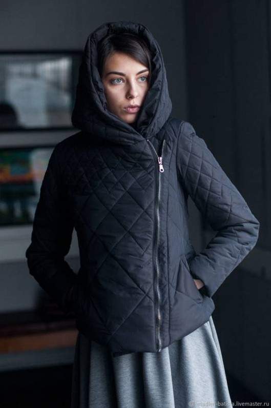 Пуховик с трикотажным капюшоном.