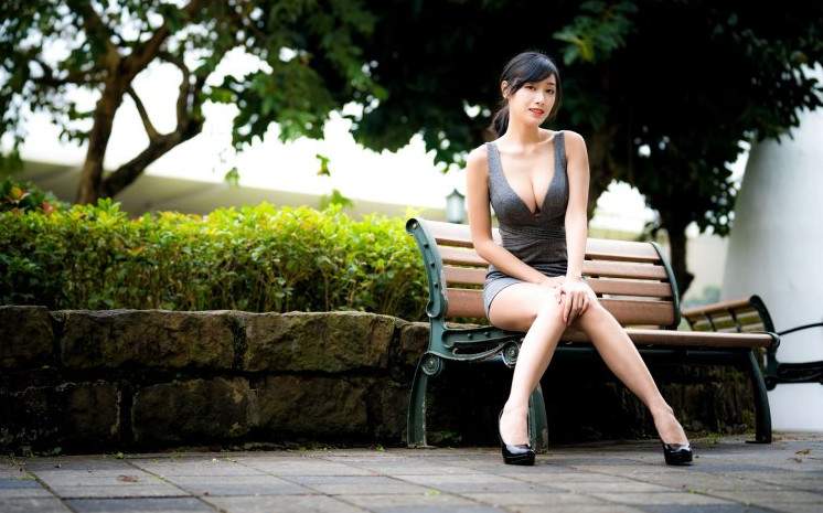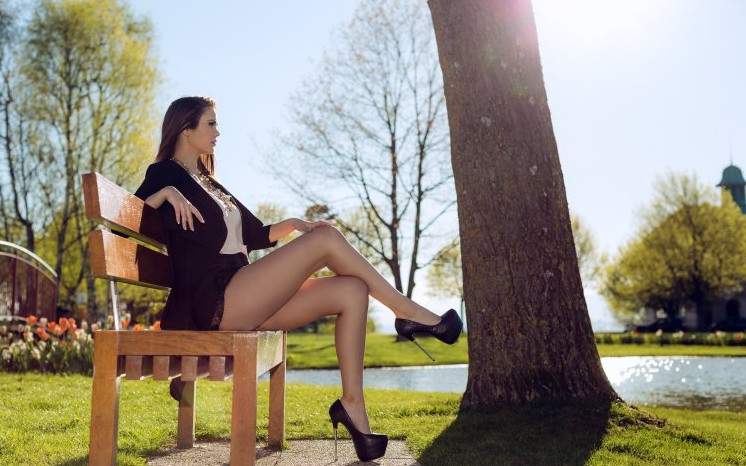 Эротика с брюнеткой на лавочке.