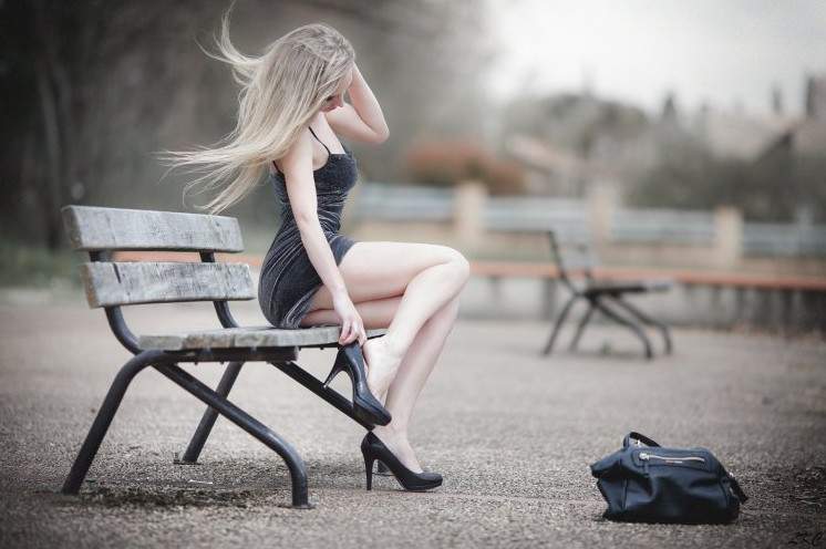 Блондиночка на каблуках.