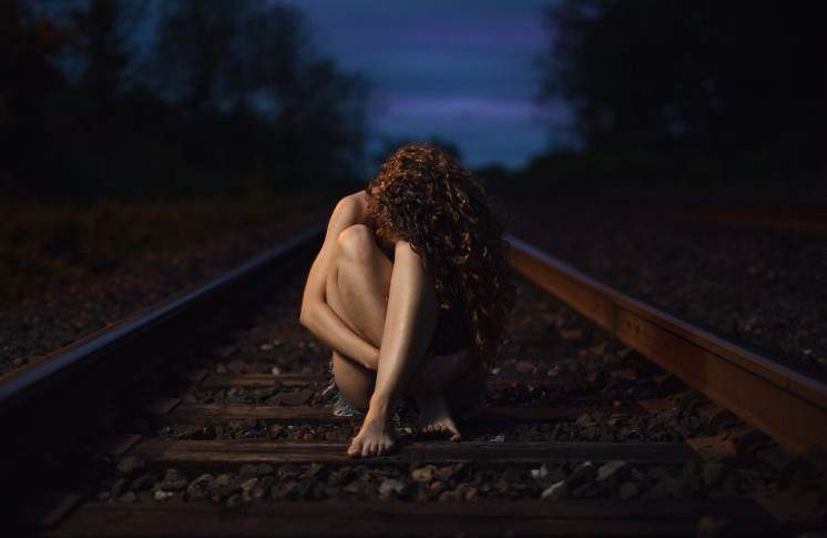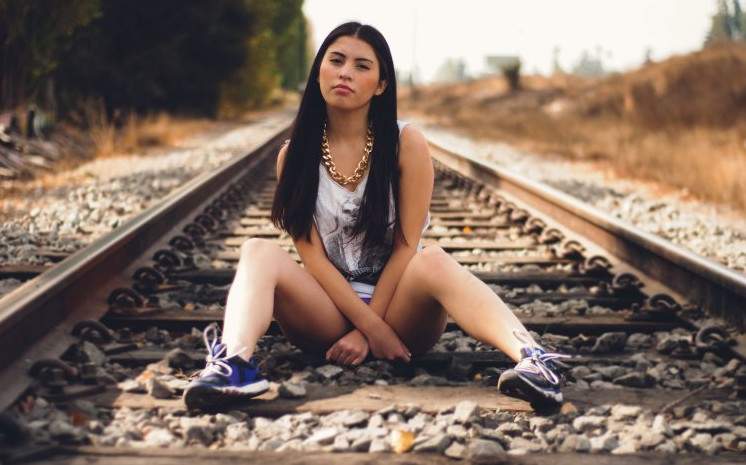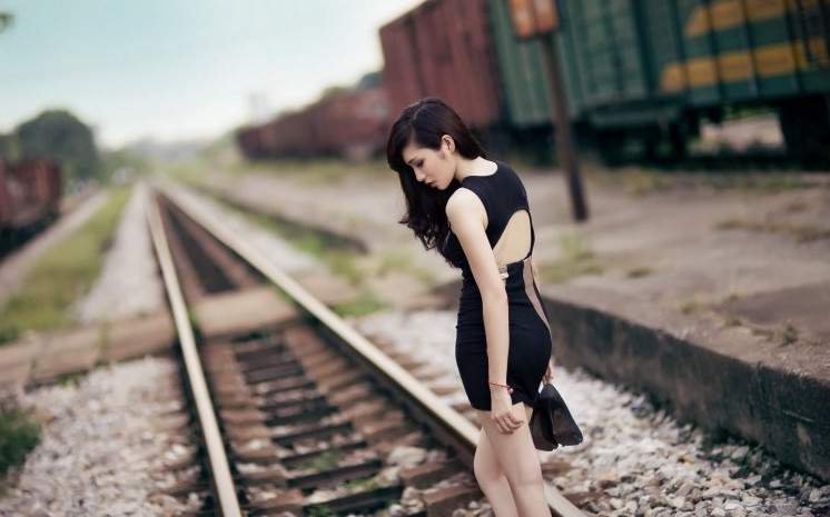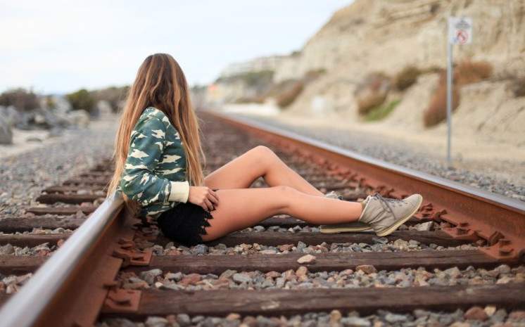 Девушка на рельсах печальная.