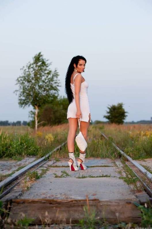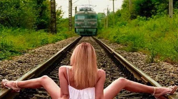 Нагая девка на рельсах.