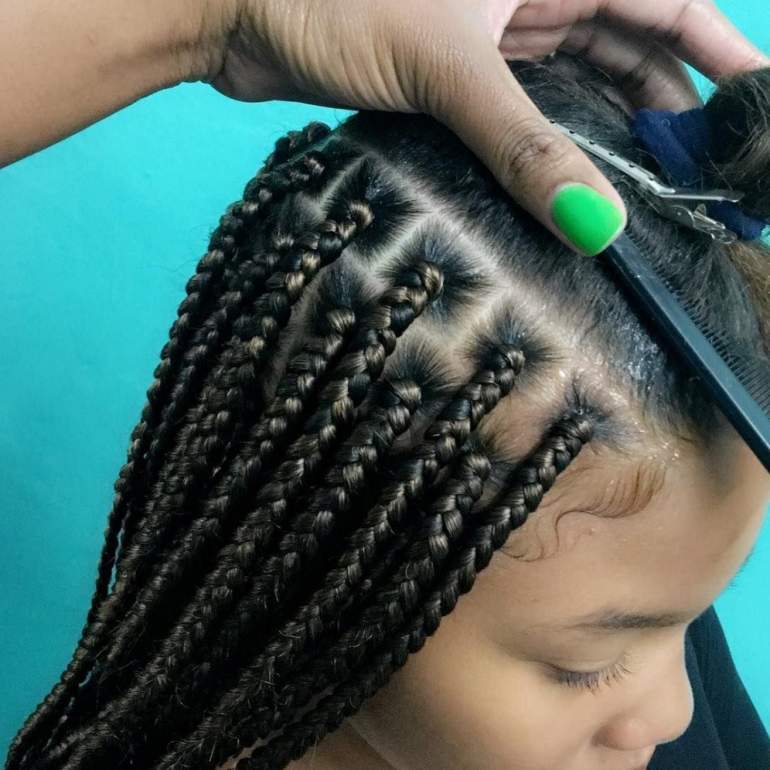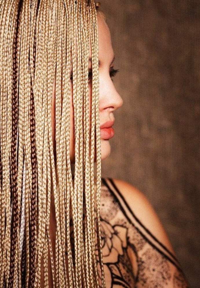 Много маленьких косичек.