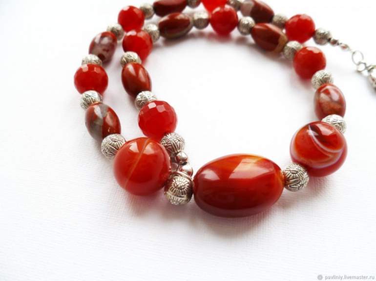 Очень красный агат бусы.