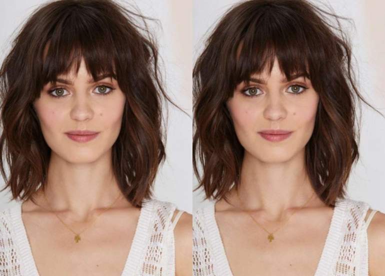 Стрижка для прямоугольного лица с челкой.
