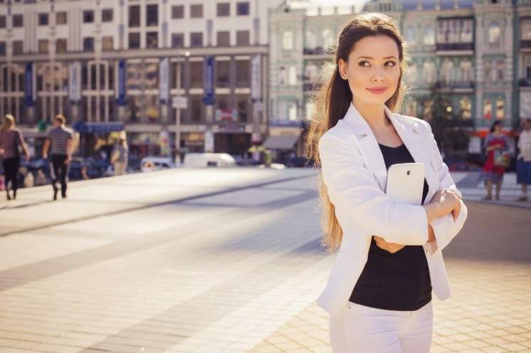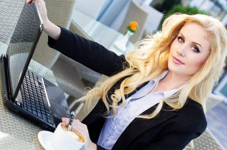 Деловая прелестная красивая женщина блондиночка в кабинете.