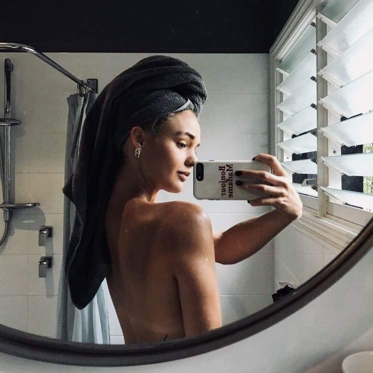 Фотосессия в ванной перед зеркалом.