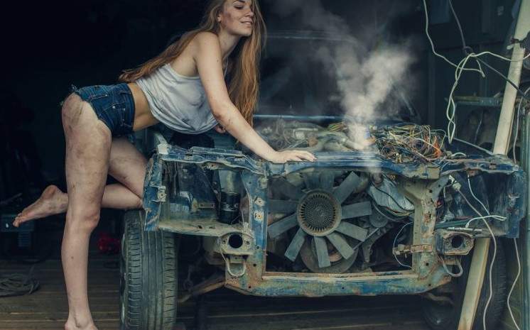 Фотосессия в гараже девушка.