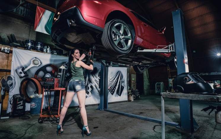 Девушка в автомастерской.