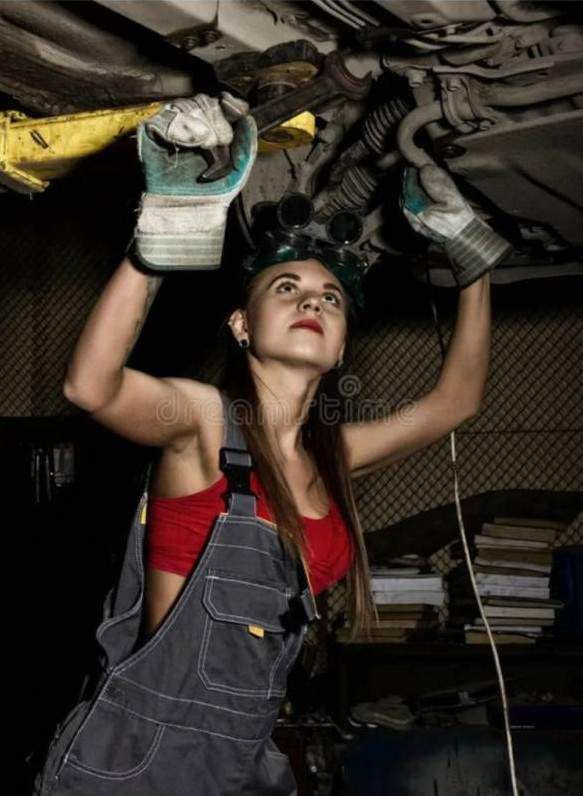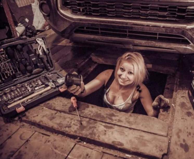 Девушка автослесарь.