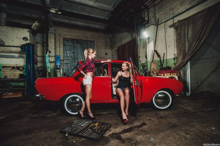 Девчонки в гараже.