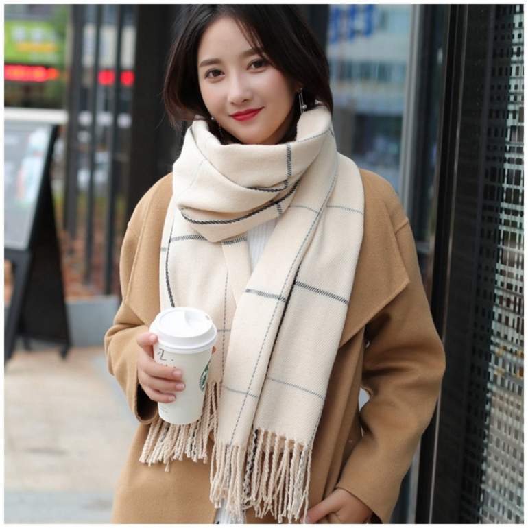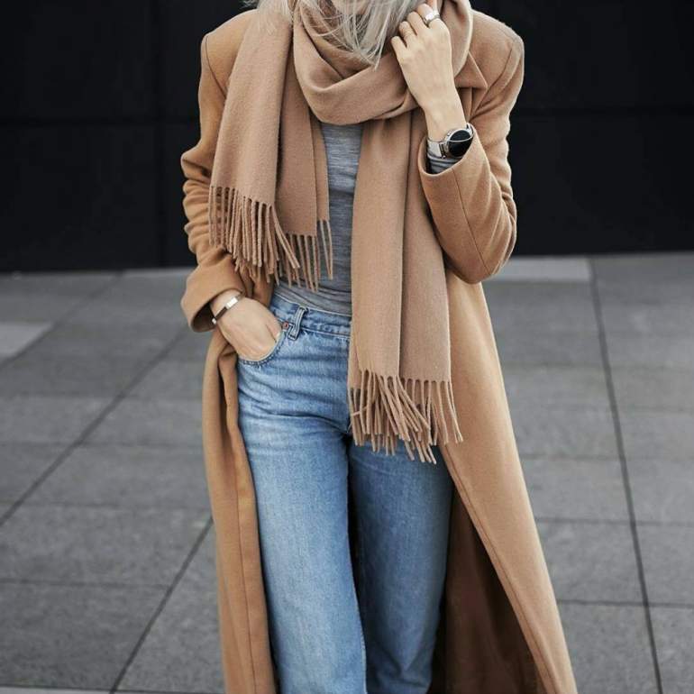 Шарф к бежевому пальто.