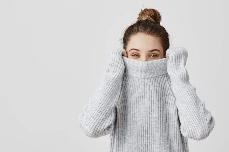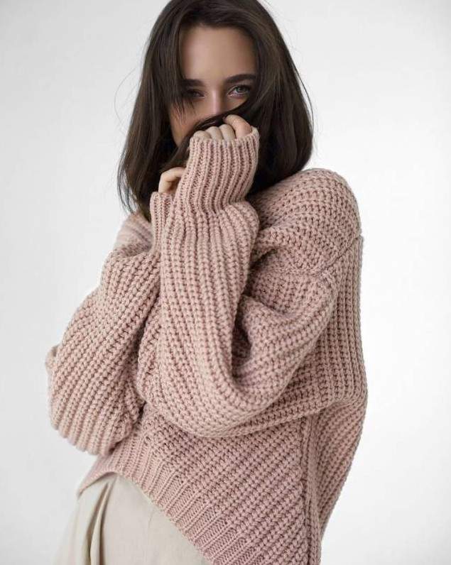 Красивая девушка в большенном свитере.