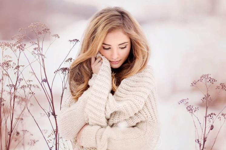 Красивая девушка в пушистом свитере.