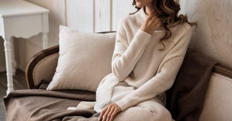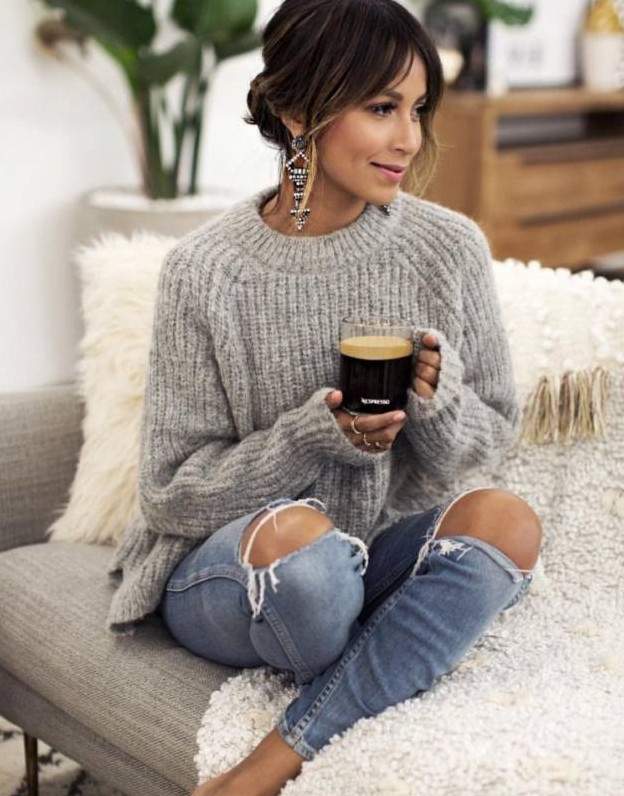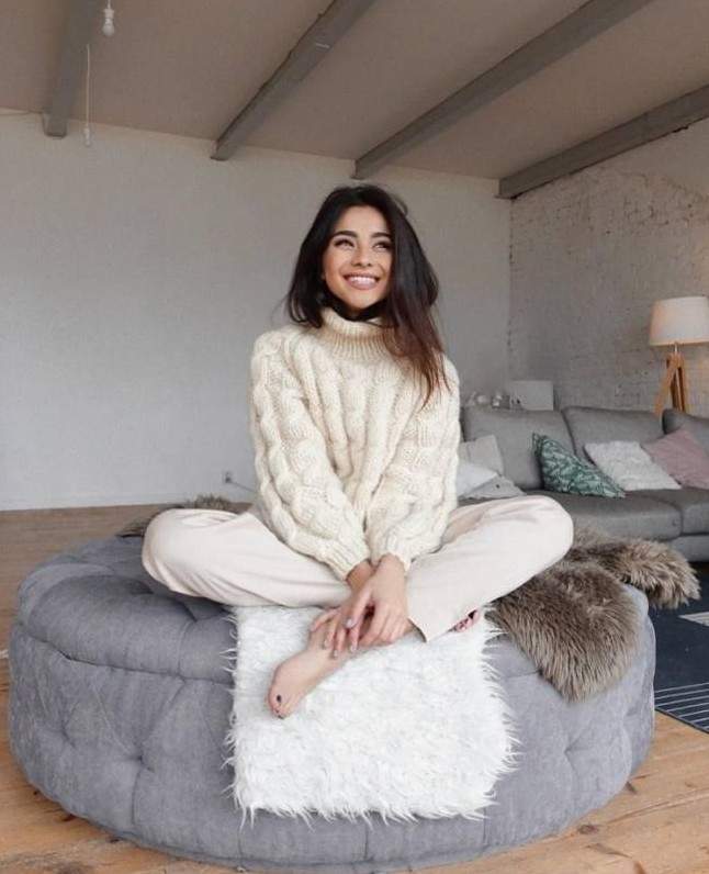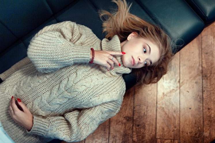 Красивая девушка в удобном свитере.
