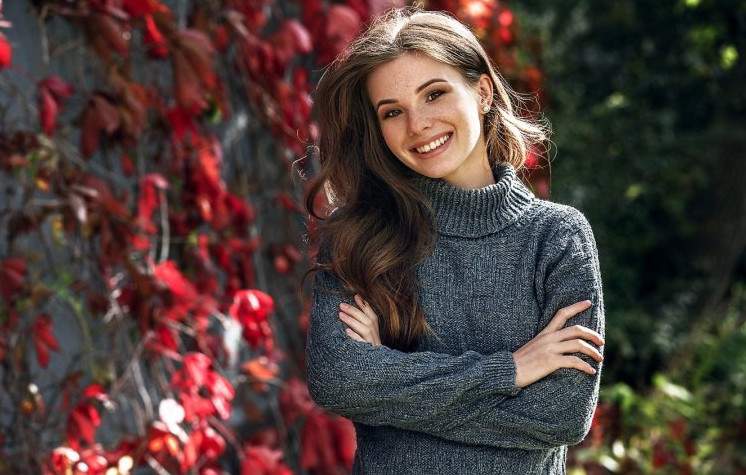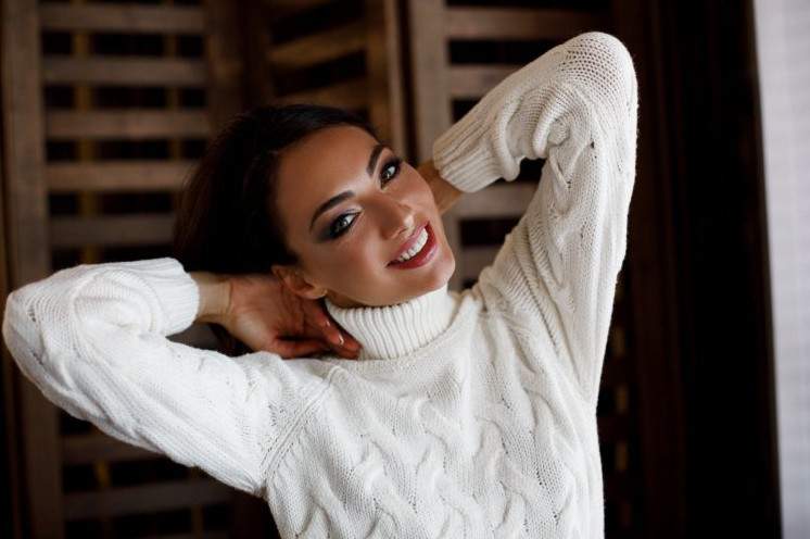 Красивая девушка в свитере.