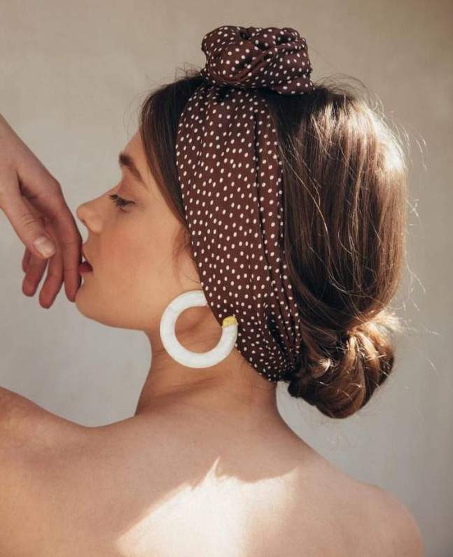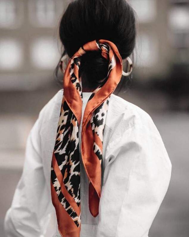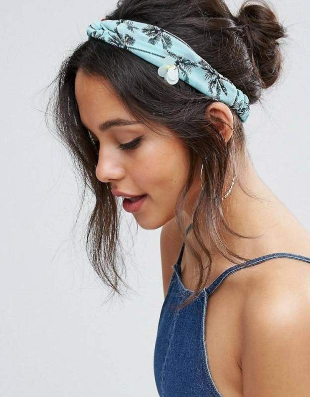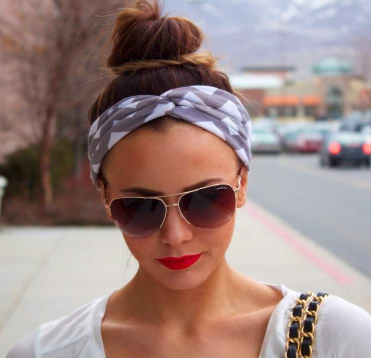 Бандана с пучком на голове.