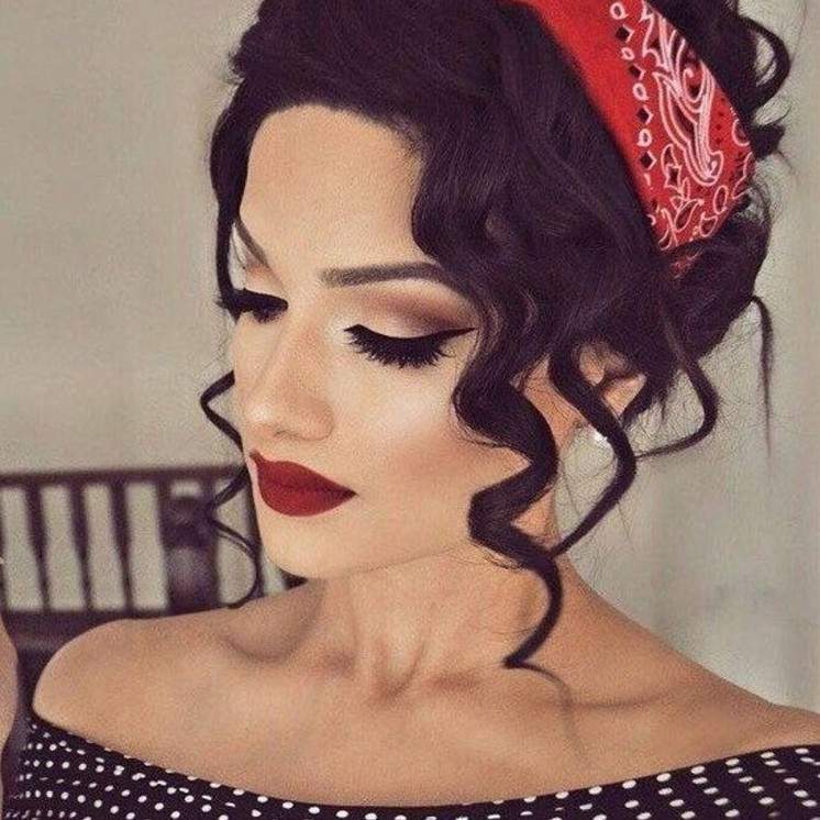 Прическа в ретро стиле с повязкой.