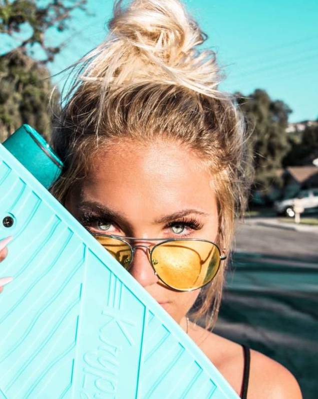 Блондиночка в солнечных очках.