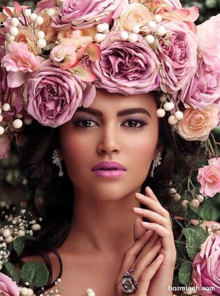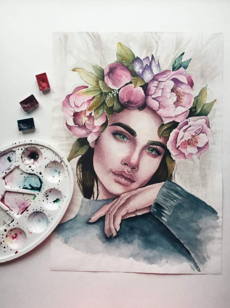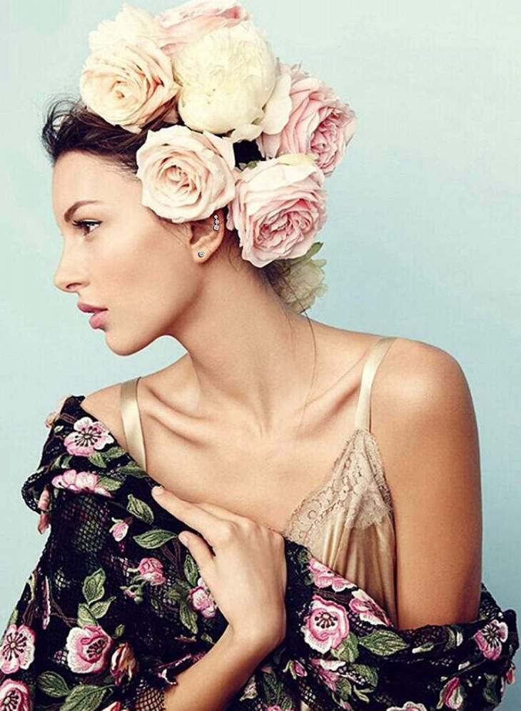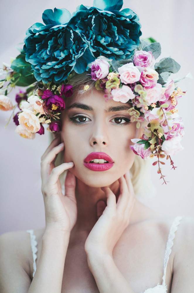 Девушка красавица с цветами в голове.