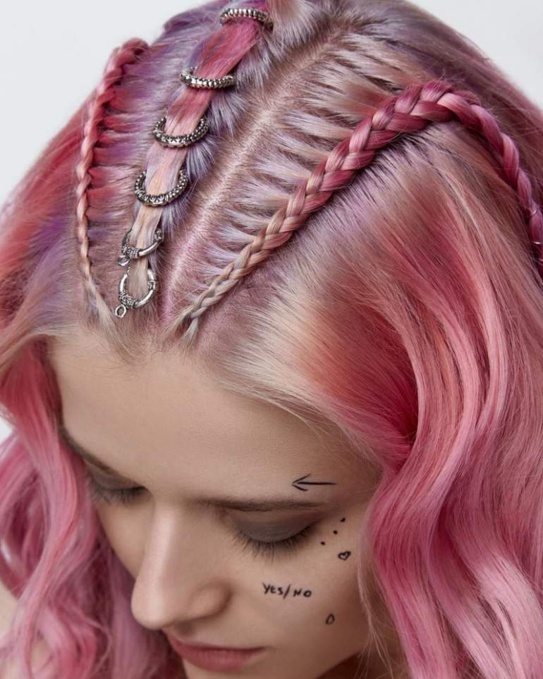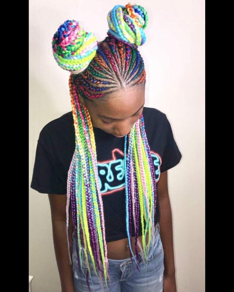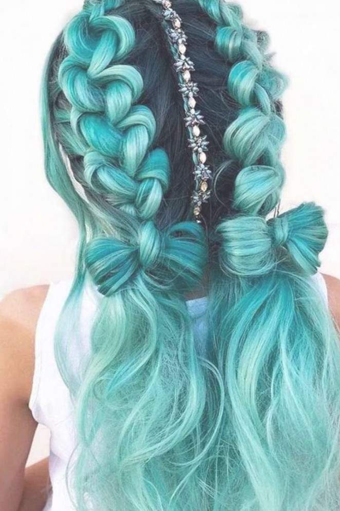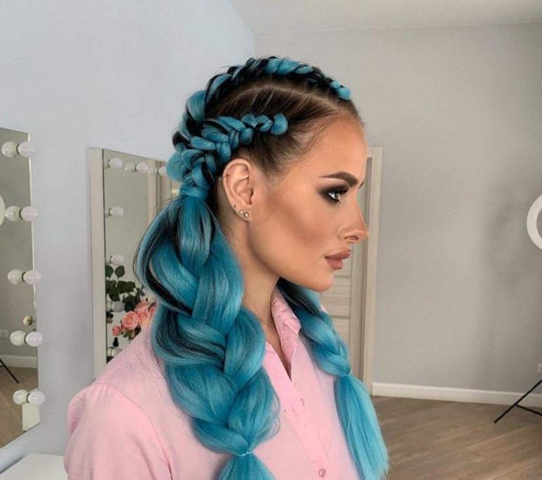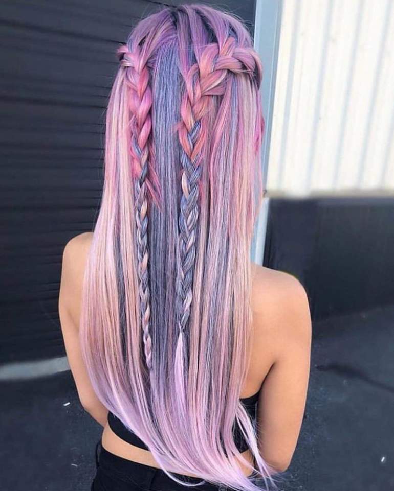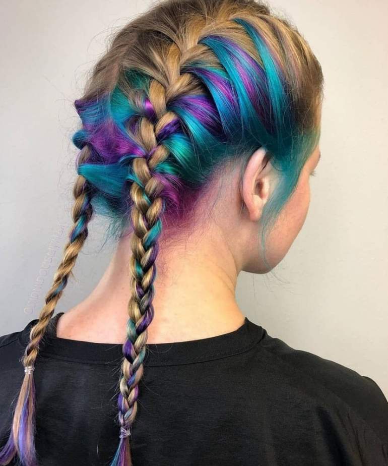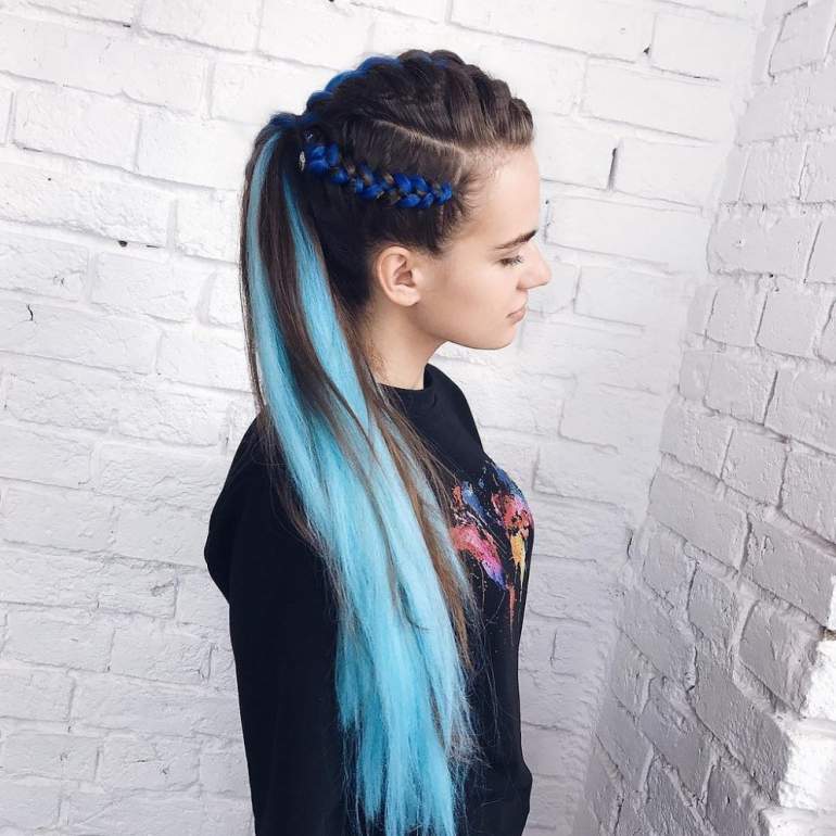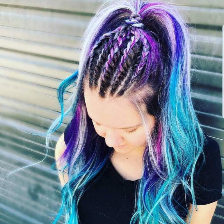 Косы с цветными прядями.