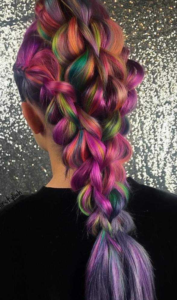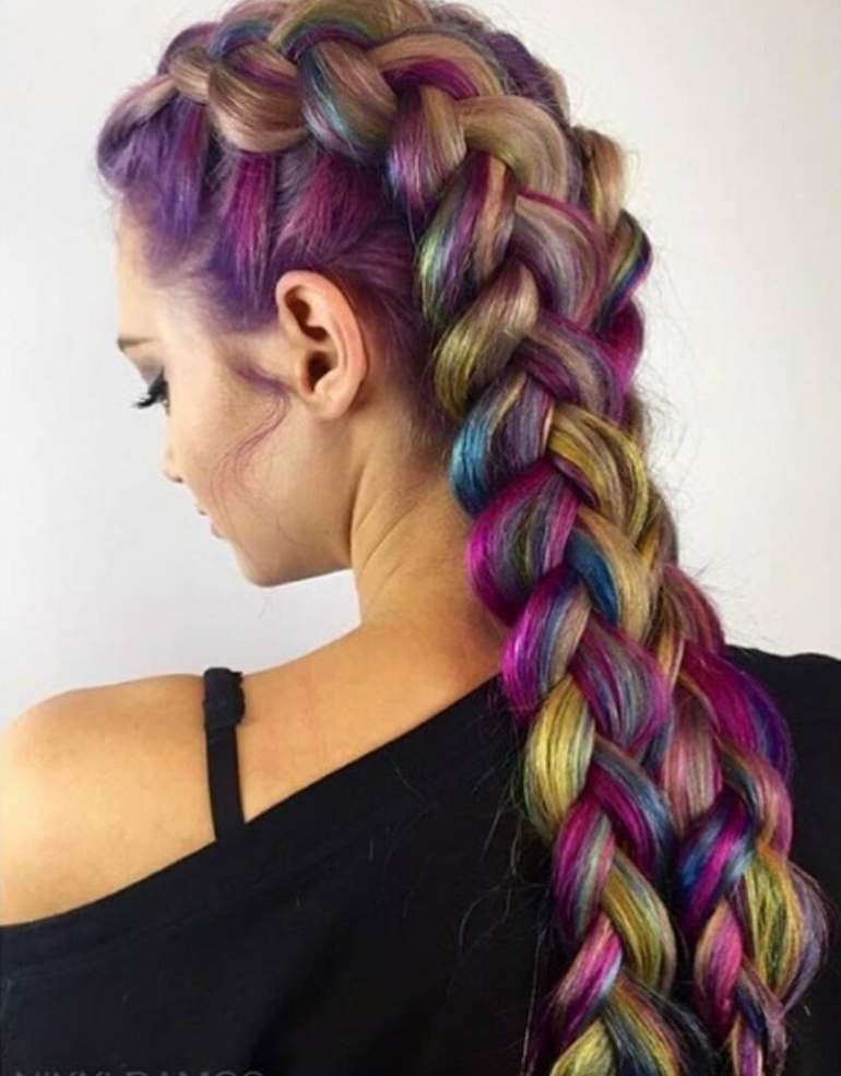 Коса с разноцветными прядями.
