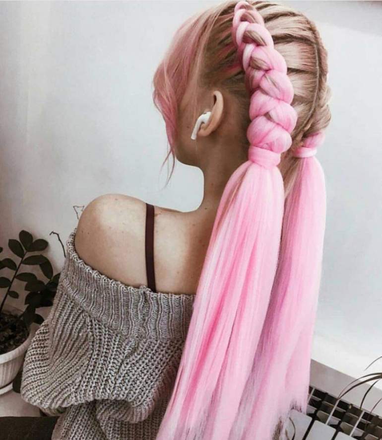 Разноцветные косички розовые.