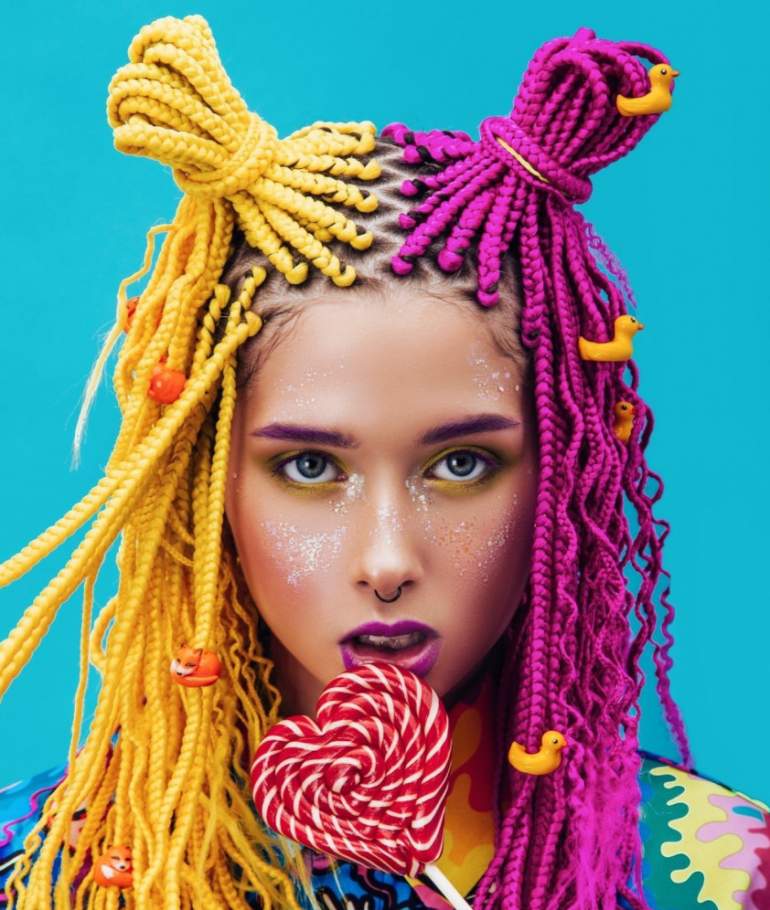 Разноцветные косички.