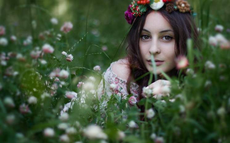 Красивая девушка в венке.